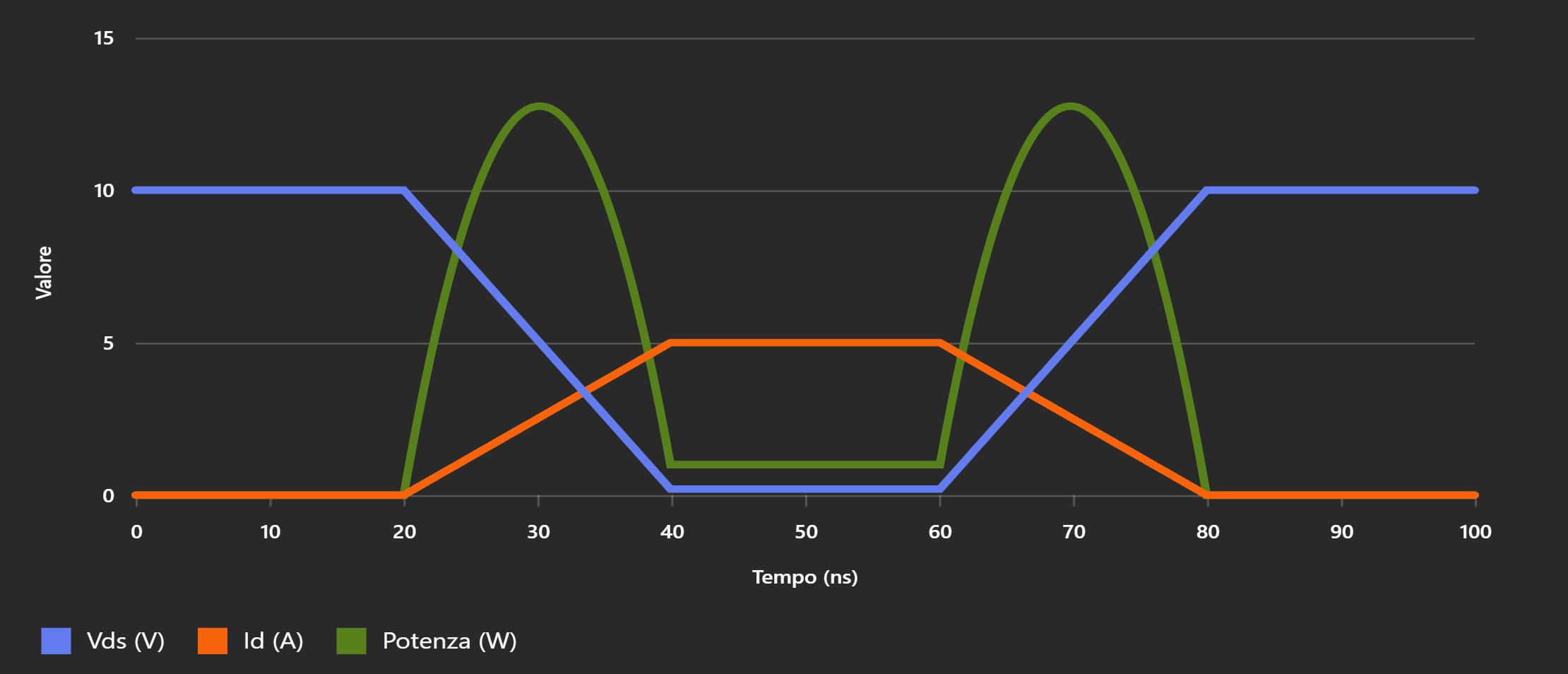 - Questo è il momento in cui il MOSFET dissipa più energia, ed è cruciale